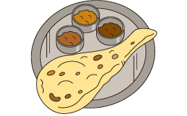 インド料理は、健康にも良い美味しい食事ですが、スパイスが効いているだけに心配な方も多いと思います。しかし、苦手な方もご安心ください。ホテルの朝・夕食はバイキングのお食事が多くなります。日本食はありませんが、洋風、中華風、インド料理の三種類からお好きなものをお召し上がりください。ビュッフェでは、チキン、豆、野菜、魚など数種類のカレー、パン、焼きそば、ライス、魚の揚げもの、フライドポテト、などがよく並びます。スパイスが苦手な方は、他にもいろいろ選ぶことができます。ただし、油をたくさん使った料理も多いため、食べ過ぎにはご注意ください。