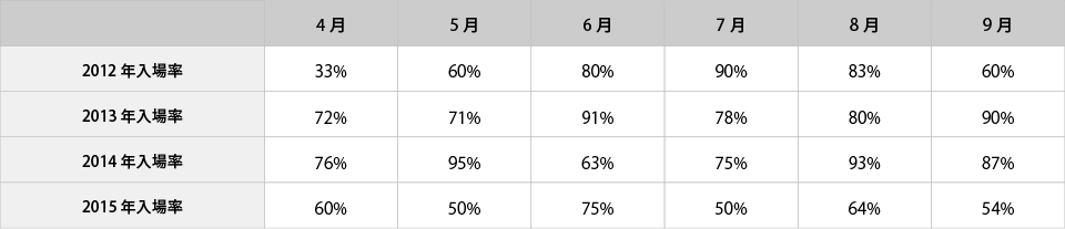 青の洞窟入場率(クラブツーリズム ヨーロッパ旅行センター主催ツアー調査)