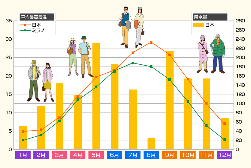 A.日本とイタリアの気候は似ているということは、このシーズンカレンダーを見るとお分かり頂けると思います。