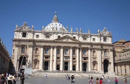 ローマの中にある独立国家、バチカン市国のシンボル「サンピエトロ大聖堂」。キリスト教カトリックの総本山で世界中から信者が訪れます。
