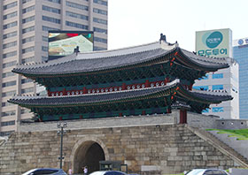 南大門市場は服や雑貨だけでなく、食料品も豊富!日本では高価な高麗人参なども安価で手に入る。また、市場のすぐ近くにある崇礼門は、現存する李氏朝鮮最古の木造建造物で、国宝第1号に指定された。