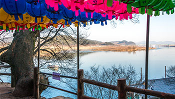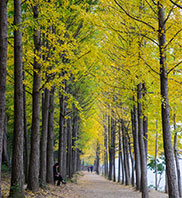 韓流ブームの発端となった有名ドラマのロケ地、南怡島。春川市の北漢江(プッカンガン)に浮かぶ半月型の島で、約14万坪の島には四季折々の顔を見せる自然が美しい観光スポットです。