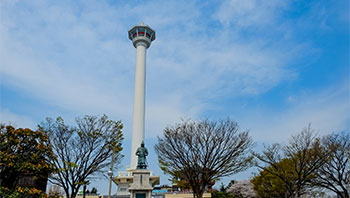 慶州の仏国寺にある塔を模した約120mのタワー。晴れた日には遠く対馬まで望むことができる。
