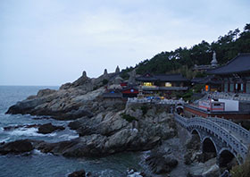 海東龍宮寺は海岸沿いの岩場に建てられた美しい寺で、多くの参拝客が訪れる韓国の三大観音聖地の一つ。心から祈ることで誰もが願いごとを1つだけ叶えてもらえるという言い伝えがある。