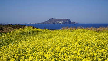 10万年前の海底噴火によってできた巨大岩山であり、済州島(チェジュド)を代表する景勝地の1つ。その頂上から眺める美しい日の出は、済州島の10絶景に数えられている。