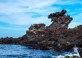 約200万年前に漢拏山の溶岩によってできた高さ10mほどの奇岩。龍の頭に似ていることから、この名がついた。