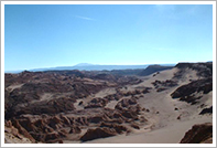 チリのアンデス山脈と太平洋の間にある砂漠。世界一降水量の少ない砂漠といわれる。深く険しく刻まれて岩肌の侵食具合がクレーターのように見える月の谷、岩塩だらけの湖・アタカマ塩湖など、周辺にも絶景が広がる。