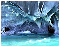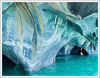 ブエノスアイレス湖の美しい青が、光に照らされることによって洞窟全体が美しい青に染まります。ツアーでは小型モーターボートに乗って、洞窟まで約40分。