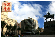 ヨーロッパの都市を思わせるモンテビデオは、30万本以上の街路樹に覆われた緑あふれる街。1825年に独立宣言が行なわれた独立広場に残る石の門は、かつての城塞の名残りである。ここから港までが城塞の内部だった場所で、モンテビデオ発祥の地でもある。