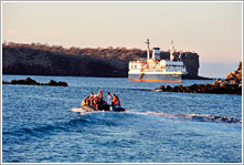 いよいよ、待ちに待ったガラパゴス諸島へ向けて、飛行機で移動します。サンクリストバル島に到着後、入国審査、手荷物検査を受け、ボートでサンタクルス号へ。乗船後は、避難訓練や船内の楽しみ方をガイドさんより講義を受けます♪昼食後、いざ、プンタピットの観光へ!ここは、ガラパゴスにおいて、3種のカツオドリが同時に見られる唯一の場所です。また、グンカンドリやオスアシカのコロニーもあります。
