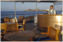 船内には、ジャグジーやバーカウンター、レストランもあり、24時間ご利用いただける、ドリンクコーナーもございます。一番の特徴は、アットホームなスタッフが多く、船内イベントも毎日行われることです!カクテルパーティーや船長の引き語り音楽、カラオケパーティーなどが行われます。