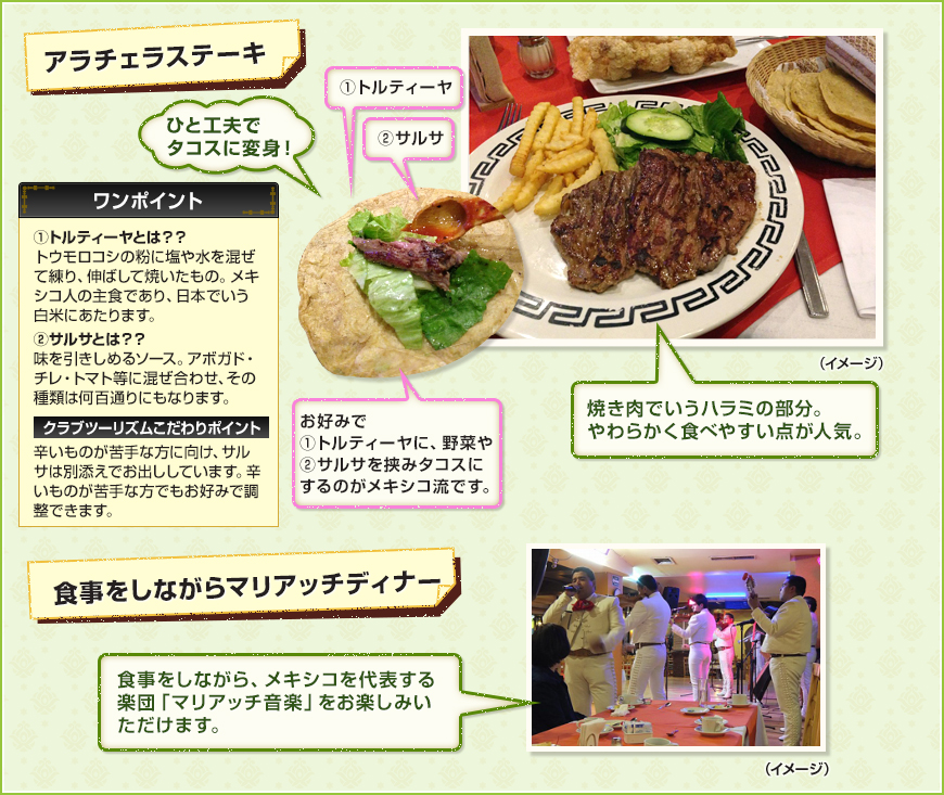 メキシコ料理は2010年に世界文化遺産に登録され、注目を受けています。日本でもファーストフードでサルサバーガー、コンビニでトルティーヤ巻きもあり、親しまれています。現地のものを現地で、雰囲気や文化を感じながらお召し上がりください。