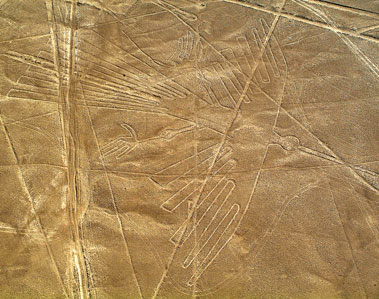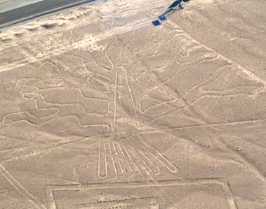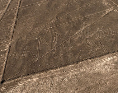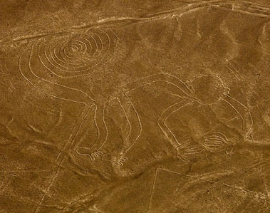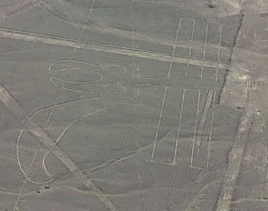地上から見ると、ただの轍にしか見えないような20〜30cmほどの溝でも、空からはくっきりと見える巨大絵。方法としては、小さな絵を元にして拡大法を用いて作成した、と推定されており、一筆書きで描けるものが多いのもそのためとされます。また年代測定法から、紀元前後〜8世紀前後までに描かれたものとみられていますが、その目的については諸説あるものの、文字による文献が残されていないこともあり、解明には至っていません。