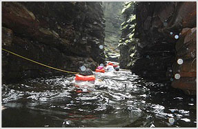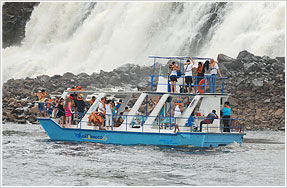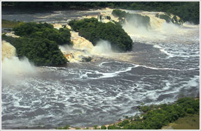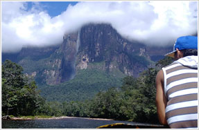 カナイマから航空機で約40分。悪魔の鼻とよばれる大きなテーブルマウンテン“アウヤンテプイ”を超えて、小さな村に行きます。ここから、岩場を歩き、川を横切り、ときにはロープをつたって泳いだりしながら、カバックの滝を目指します。全身ずぶ濡れになる行程ですので、皆さま、水着での観光になります。そしてたどり着いた先に広がるのは、それらの苦労も忘れてしまう、洞窟の奥に滝が流れ落ちる幻想的な景色です。