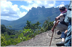 エンジェルフォールを間近で眺められるポイント【ライメの展望台】には巨大な岩があり、その上にゆっくりと寝そべって、悠々と流れ落ちる滝を見ることが出来ます。冊などはございませんので、足元にお気を付けいただき、またカメラなどを落とさないよう十分ご注意下さい。