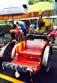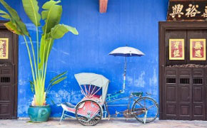 “トライショー”は、いわばマレーシアの人力車で、これ自体がペナンの名物ともなっていると言えるでしょう。前に横並びに乗客2人が乗れるつくりで、後ろが自転車となっており、ドライバーさんがギコギコと動かします。トライショーの音を聞きながら、ジョージタウンの観光地をゆっくりと回ることができます。