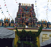 1873年に建てられたジョージタウン内では最古のヒンドゥー教寺院。南インドのドラビダ様式でつくられており、内部には金・銀・ダイヤモンド・エメラルドなどが豪華にちりばめられた女神像が安置されています。外観の動物の彫刻やカラフルな神々も見事です。