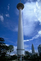 標高94メートルのブキッ・ナナスの丘にそびえたつ、高さ421メートルの通信タワーです。頭頂部は南国のフルーツとしてもイメージの強いパイナップルがモチーフとなっている特徴的なつくりになっています。25階には高さ276メートルの展望台があり、ペトロナスツインタワーをはじめ、360度のパノラマ風景を見ることが出来ます。また回転式レストラン「アトモスフィア360℃」では眺めと同時に食事も満喫することが出来ます。