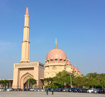 クアラルンプールとクアラルンプール国際空港の中間に位置する新行政都市プトラジャヤにあるピンクと白色が基調のプトラモスク。愛称はその色のとおりピンク・モスクです。
