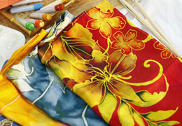 バティックとは「ろうけつ染め」のことで、一つ一つ手間のかかった独特の染色方法でつくられます。南国らしい模様や色合いが特に女性の方に人気でワンピース、ブラウス、スカート、バッグなど希望にあった品物を見つけることができます。
