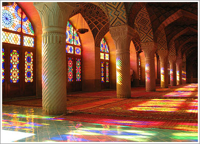 早朝、国内線にてシラーズへ。シラーズは四季を通じて穏やかな気候のため、街には多くの庭園が点在しており、中でもバラの美しさは有名です。また古くから芸術と文化の中心地でもありイランの四大詩人のうちの二人を輩出したのもこの地のため、シラーズは『バラと詩の街』として名高い地です。3日目はアカデミックなシラーズの街を観光します!いくつものモスクや庭園を観光しますが、ここでは2つの注目観光地をご紹介いたします!まずは『ローズモスク』。正式名称は「マスジェデ・ナスィーロル・モスク」という長い名前。タイルに綺麗なバラの模様が描かれているためローズモスクと呼ばれています!このモスクの見所は、西の礼拝堂にあるステンドグラス。ステンドグラスから差し込む光が礼拝堂を照らし出す様子はとても美しく一見の価値ありです!お次に紹介するのは『ハムゼ廟』。イスラーム教シーア派の聖人のお墓です。興味深いのは、その内部。なんとすべてがガラス張りになっておりギラギラ!他のモスクとは一味変わったモスクです!(※モスクは礼拝など、宗教行事の関係で入場出来ない場合もございます)