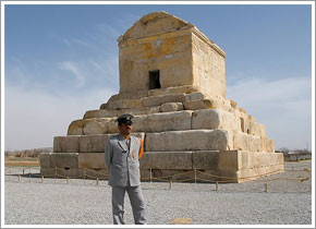 ペルセポリス観光後はキュロス2世のもとで建設が開始されたアケメネス朝最初の首都『世界遺産パサルダガエ』へ。ここにはピラミッド型に石壇を積み上げたキュロス2世のお墓もあります。