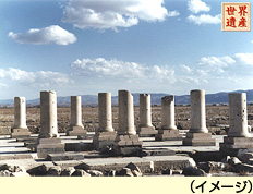 パサルガダエとは、「ペルシャ人の本営」という意味で、かつて西アジア一帯をまとめ、繁栄をきわめたアケメネス朝ペルシャの最初の都です。キュロス大王の墓をはじめ、宮殿の柱や碑文、レリーフが今も残っています。