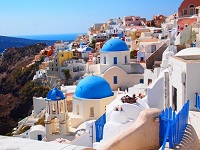ギリシャ正教会の屋根が印象的な町。雪のように輝く白壁の家々が教会の青色の屋根を引き立てます。フィラの町と、夕日の眺望で名高いイアへ訪れることができます。絵葉書のようなロマンチックな町並みが続き、夕方になると夕日が美しく照らします。