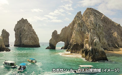 バハカリフォルニア半島最の南端に位置する、リゾート地・ロスカボスの一帯にあります。美しく陽気なビーチと青い海に立ち並ぶ奇岩が特徴の観光地です。