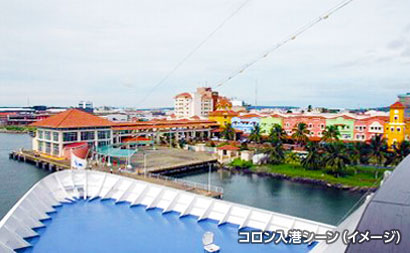 パナマ運河は、パナマ共和国のパナマ地峡を開削して造られた大西洋と太平洋を結ぶ、3組の閘門(水門)と3つの人工湖を繋いだ全長80kmの運河です。年間平均13,000隻を超える船舶が通航し、世界の海運にはなくてはならない運河となっています。その仕組みは閘門式を採用しており、通過できる船のサイズは、船幅:32.3m、長さ:294.1m、喫水:12mとなっており、その最大サイズでパナマックスと呼ばれています。パナマ運河の通過時間はおよそ9時間、大西洋から太平洋を抜ける雄大な景色と、限られた船でしか通過できない迫力の景観をお楽しみください。
