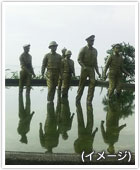 1944年10月20日にマッカーサー他6人の米軍兵士がフィリピン奪回の第一歩を印した場所。現在は、その模様を金色のブロンズ像で表現している。