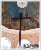 マゼランが1521年にセブ島に訪れた際に建てたといわれる木製の十字架。訪れた人は、赤い蝋燭を灯して願い事をしている。