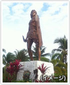 冒険家マゼランの記念碑と、その侵略行為に勇敢に立ち向かい、マゼランを戦死に追いやった英雄ラプラプの像が立つ。