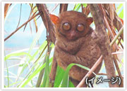 世界最小と言われるメガネザル「ターシャ」は、体調約10センチで、丸々とした大きな目が特徴。現在は、絶滅危惧種とされているので、保護センターなどで観ることができる。