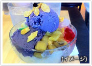 紅芋アイスやナタデココ、トウモロコシなどが入ったかき氷。現地の言葉で「ごちゃまぜ」という意味。