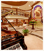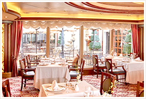 2層吹き抜けの壮大な造りにグランド・ステアを擁する船内最大のレストランです。