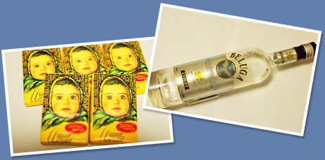 また、ロシアのお酒といえばウォッカ。何百もある中でおすすめは「ベルーガ(右)」というブランド。チョウザメのエンブレムが便に描かれている一品。ベルーガはチョウザメのことでロシアの名産キャビア作る魚です。ロシア人にも人気でリーズナブルなものから高級なものまで数種類が店頭に並んでいます。(日本に持ち帰ることができるお酒は720ml×3本までなので買いすぎにはご注意を)