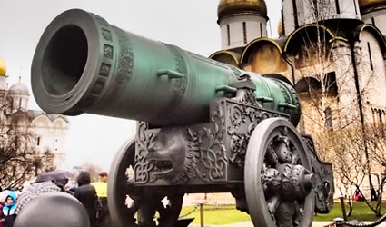 鐘楼をはさんで鐘の王様の反対側たたずむ大砲の王様。16世紀末に作られた当時は口径890mm、重量40トンの世界最大の大砲でした。ただ、今まで1度も砲弾を発射したことはなく、砲弾はあくまで飾りとのこと。