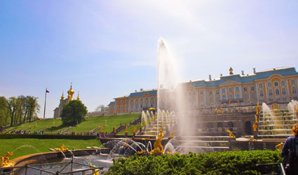 ※噴水は例年5月中旬から10月上旬までご覧いただけます。ただし天候によりご覧いただけない場合もございます。また、出発月によって、庭園もしくは、宮殿の内部の観光になります。