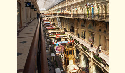 GUM(グム)百貨店は、モスクワを訪れる旅行者の多くの方が訪れるデパートの一つです。1893年の公式オープン後、モスクワのメインのショッピングセンターで、モスクワっ子達のお気に入りの散策の場所の一つとなり、現在もモスクワ市の名所旧跡の一つです。グムの中の噴水の周りには、いつも人々が集まっています。