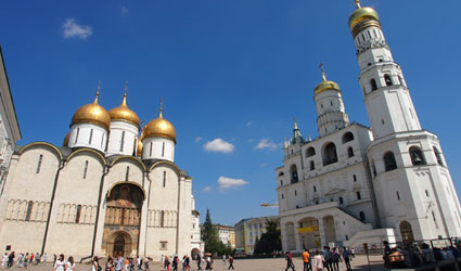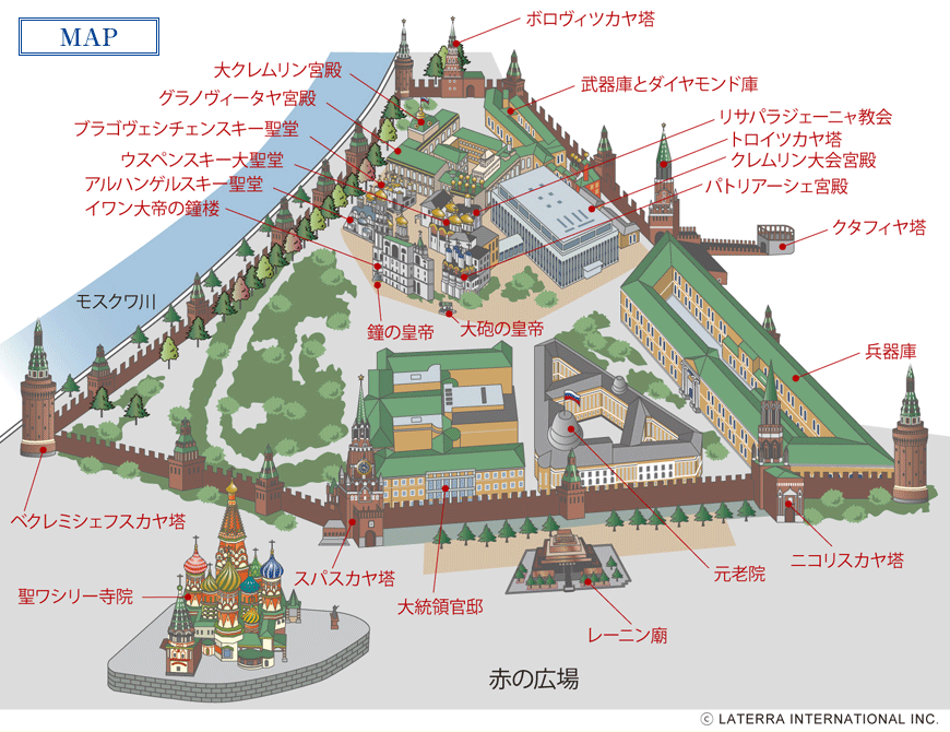 「城塞」を意味し、ロシアの多くの都市にあるが、その中でも特に有名なモスクワのクレムリン。ロシアの政治、軍事の中心として繁栄してきた姿を見ることができます。中でも見どころは、武器庫、ダイヤモンド庫。ロシアの歴史を物語る宝物の数々を展示しています。