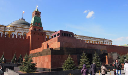 レーニン廟は有名な建築家アレクセイ・シューセフの設計によって建てられました。実はレーニン廟はユネスコの世界遺産に登録されています。レーニンは第一次世界大戦とロシア革命の時期のロシアで、第2次ロシア革命の指導者となった人物。「レナ川の人」という意味で名づけられました。廟の下には1920年代半ばから腐食防止加工がなされたまるで眠っているかのようなレーニンの遺体が安置されています。