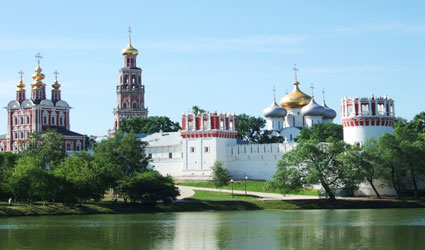 世界遺産に登録され、ロシアを代表するバロック様式であるノヴォデヴィッチ修道院は、1524年にポーランド・リトアニアとの国境紛争の記念として公爵ヴァシーリイ3世によって創立されました。湖畔からの景色はまるで自然の額縁収めた絵画のよう。