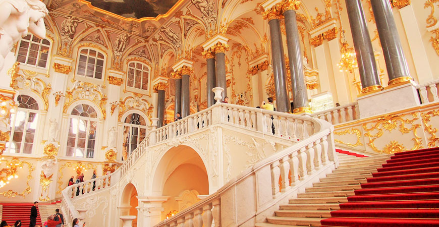 世界有数の美術館のひとつ・エルミタージュ美術館。世界でも名高い美術品ばかりをコレクションした美術館です。この美術館は建築複合体で、冬の宮殿、大エルミタージュ、小エルミタージュ、新エルミタージュ、エルミタージュ劇場という建築群から構成されています。その内部に納められている作品数は、なんと約300万点!1作品を1分ずつ鑑賞しても、すべて鑑賞するのに5年以上かかるほどの量です。次々と現れる名画と、延々と続く豪華な部屋に圧倒されることでしょう。