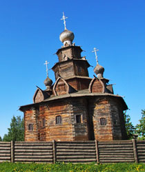 オネガ湖に浮かぶ島。キジ島は、ロシア正教会の木造教会建築の美しいアンサンブルで知られています。1960年島全体が木造建築の特別保存地区に指定され、ロシア全土から様々な木造建築が移築され、1990年木造教会建築がユネスコの世界文化遺産に登録されました。