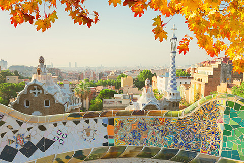 ガウディによって設計されたイギリス風の庭園住宅地グエル公園。敷地内には波のように曲線を描くベンチや、タイル装飾を施したオブジェの数々が立ち並び、独特のセンスあふれる世界が広がります。また、ガウディの当時の暮らしを再現した博物館も公開されており、彼のイマジネーションに触れることもできます。