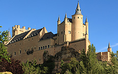 世界遺産「セゴビア旧市街と水道橋」の一角をなすのが、岩山にそびえるアルカーサル。セゴビアのアルカーサルは「白雪姫」の城のモデルになったともいわれ、スペインに数ある城のなかでも、最もメルヘンチックな城として有名です。高さの異なる塔が複雑なシルエットを描く光景はなんとも幻想的です。