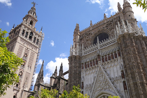 アンダルシアの州都セビリアは、大航海時代には繁栄を極め、16~17世紀には優れた芸術家たちを輩出しました。世界で三番目に大きいカテドラル、アルハンブラ宮殿を思わせるアルカサル、インディアス古文書館といった世界遺産の宝庫であり、また、フラメンコの本場でもあり非常にエネルギーあふれる街です。