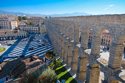 古代ローマ人によってつくられた「水道橋」、12世紀から700年もの歳月をかけて増改築が繰り返された「アルカサル」、18世紀に完成したスペインでは最も新しいゴシック様式の「カテドラル」。セゴビアの旧市街は、それらの年代の異なる建造物が見事に調和し、美しい街並みをつくりあげています。