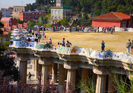 ガウディのパトロンだったグエル伯爵の要請により、20世紀初頭に作られた分譲宅地。中央広場にある人体から形が決められたという波形のベンチなど、いたる所に破砕タイルが用いられ、ガウディ建築らしい曲線を作り出しています。宅地としては買い手がほとんどつかず失敗に終わりましたが、現在は見晴らしの良い人気の公共公園となっています。